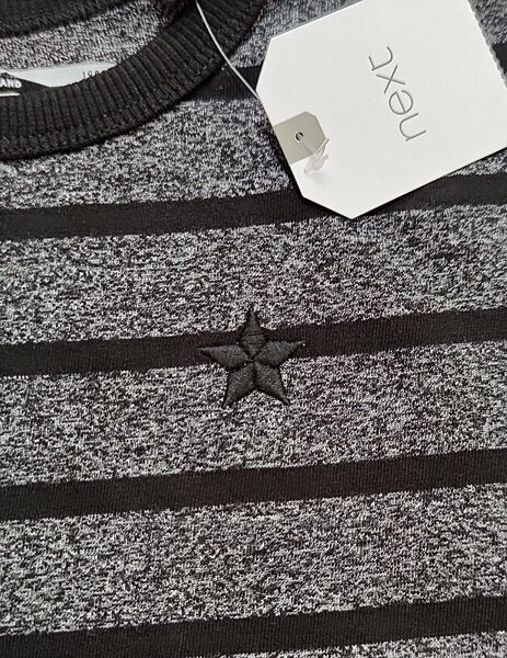 Чорно-сірий реглан у смужку для хлопчика від англійського бренду Next у розмірі 9-12 міс (н53).Вишита зірочка на грудях.