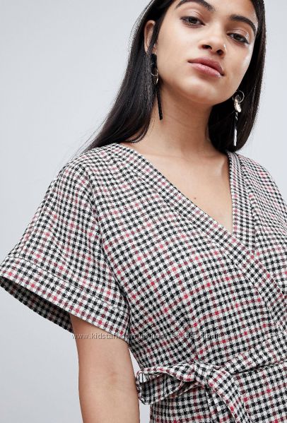 Подробное описание: Трендовое мини платье в клетку на запах и рукавами кимоно asos