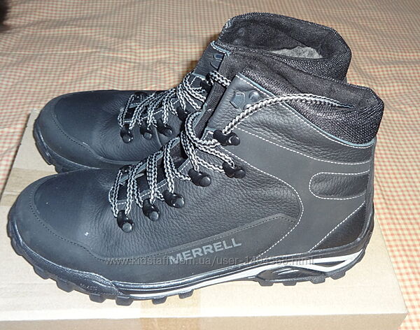 Зимние кожаные ботинки Merrell .Стильные мужские ботинки на зиму, кожаные, натуральный мех, черные.