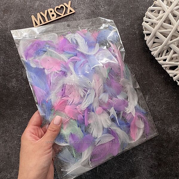 А ще наповнювач декоративний пір´я - білий, рожевий, червоний, м´ятний, блакитний, фіолетовий і мікс кольорів.