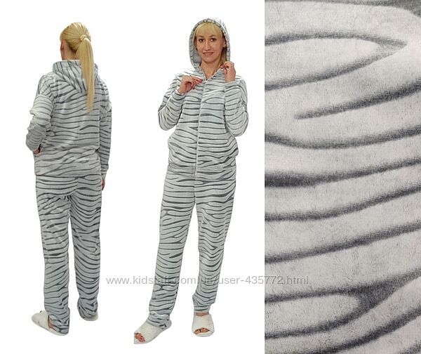 фото 5 М`яка та ніжна жіноча махрова піжама з капішоном на блискавці. Махровий домашній костюм. Матеріал виробу вельсофт - шиншила кольору. Красива та якісна - полірована і пухнаста з середини. Верх - стильна махрова худі на блискавці з капішоном, рукав на манжеті з основного полотна, низ трішки завужені прямі брюки. Вона ніби невагома рожева хмаринка буде радувати свою власницю, ідеальний варіант подарунку.