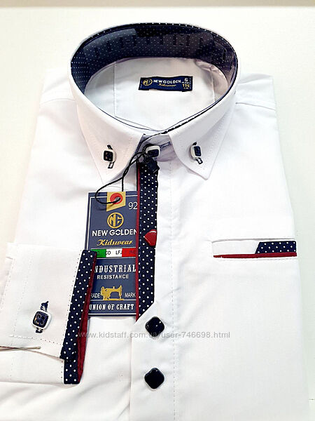 Новые поступления!!!Однотонная детская рубашка белого цвета с оригинальной отделкой сине-бордового (фото 1), темно-синего (фото 2) и мятного (фото 3) цветов от фирменного турецкого производителя New Golden. Рубашка застегивается на 3 стильные кнопки на передней планке и пуговки, рукава-трансформеры, есть карман-обманка и пуговицы на воротнике. Состав 80% cotton, 20% polyester. Коттоновое качество комфортно для ношения и имеет замечательный внешний вид. Качество супер!!!