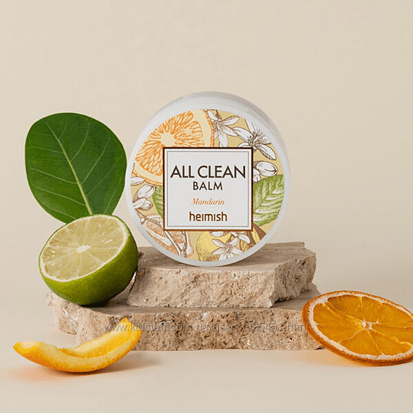 Ніжний бальзам для зняття макіяжу з мандарином Heimish All Clean Balm Mandarin відмінно справляється з макіяжем, ефективно усуває з поверхні шкіри надлишки себума та інші забруднення, що закупорюють пори, а також пом´якшуватиме й освіжатиме епідерміс, не залишаючи відчуття сухості або стяжки.Засіб має освіжаючий аромат солодкого мандарина завдяки вмісту олії, а також екстракту мандарина.