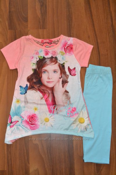 Трикотажный костюм-двойка c лосинами( велосипедками) для девочек .Размеры 116-146 см.