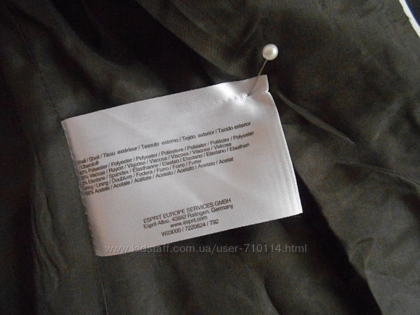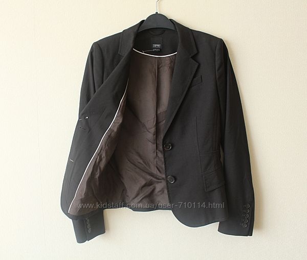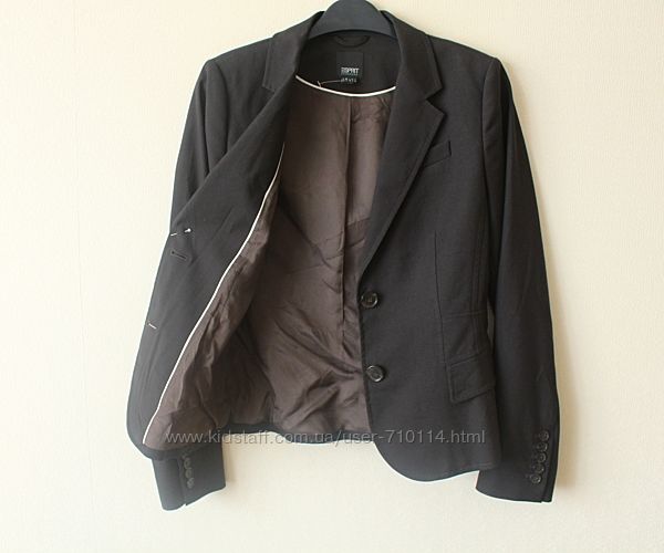 Качественный, на подкладке, логотип Esprit collection на каждой пуговице, ткань костюмная.