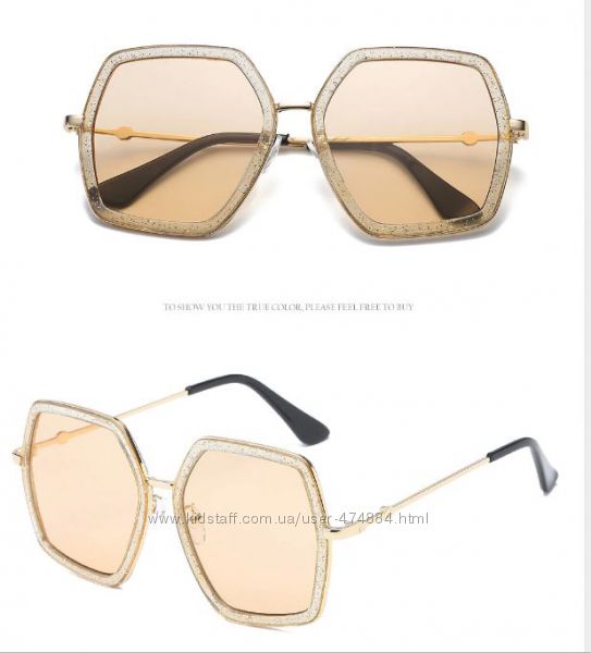 Крупные очки-стрекозы-пятиугольник с металлическими дужками (в наличии винные и шампань с блестками и дымчатыми линзами в тон) Модные и стильные очки... с защитой от солнца 100% или 400UV... форма "стрекоза" или пятиугольник... линза размером 5.5 на 5.6 см... дымчатая, с градиентным переходом или зеркальная... оправа полупрозрачная с блестками или матовая на выбор... ширина рамы 14.7 см... дужки металлические тонкие, золотые 137 мм длиной, с пластиковыми окончаниями в тон изделию... переносица 14 мм...в наличии винные и шампань с блестками и дымчатыми линзами в тон.