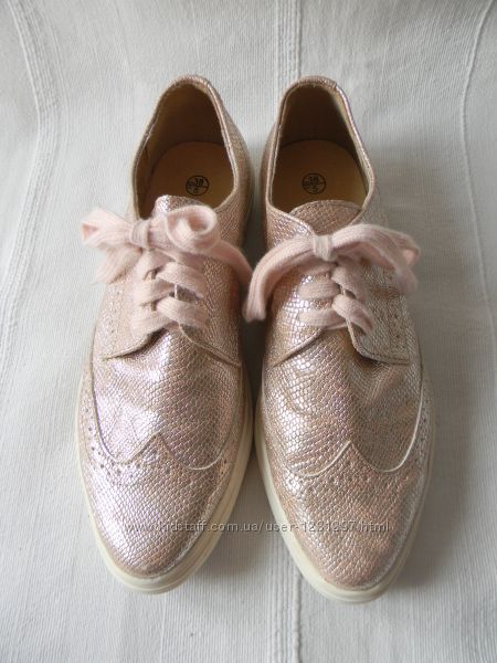 Лоферы Esmara р.38/5 розово-серебристые в отличном состоянии,есть маленький нюанс на носочке правого ботинка. Верх и стелька-кож.замСередина-тексиль под замш