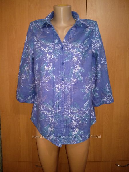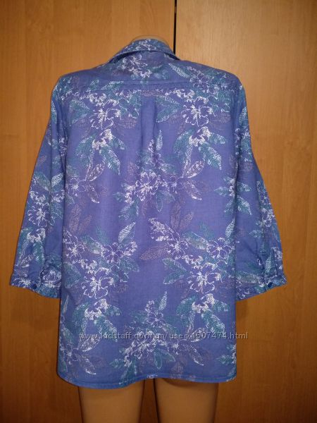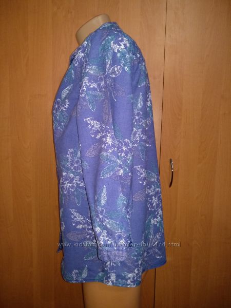 Красивенная рубашка фирмы Bm Casual приятного синего цвета с ненавязчивым цветочным принтом. Цвет равномерный, не выгоревший. Состав - 53% лён и 47% хлопок. Смотрится бесподобно! Состояние идеальное - без изъянов.Размер указан 12, наш ориентировочно 48-50. Смотрите внимательно замеры: