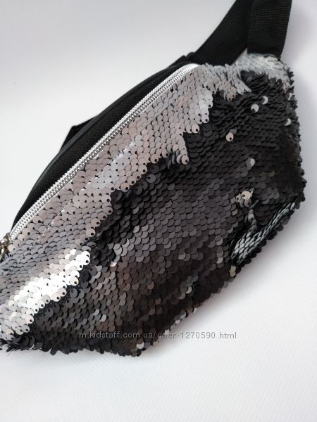 сумка бананка на пояс на два отделения с пайетками перевертышами. Матовые серебро/черные. Внутри на подкладе.Другие объявления продавца