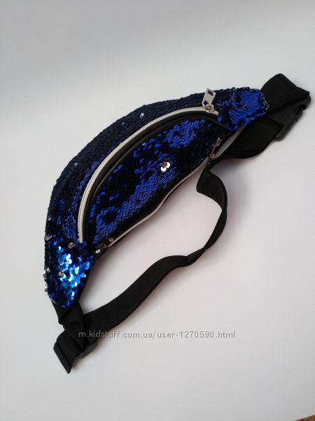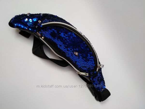 сумка бананка на пояс на два отделения с пайетками перевертышами. Синяя/серебро. Внутри на подкладе.Другие объявления продавца