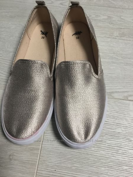 Золотистые модные мокасины H&M на ножку 38 размера, длина стельки 24,5! Очень стильно смотрятся!Другие объявления продавца