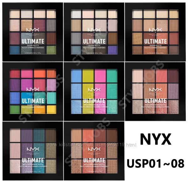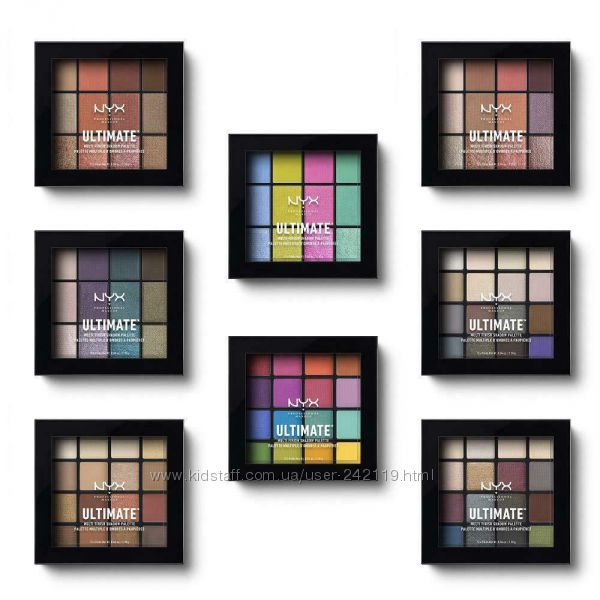 С новой, чудесной палитрой теней NYX PROFESSIONAL MAKEUP ULTIMATE SHADOW PALETTE Вы сможете создать много интересных и креативных вариантов make up глаз. Роскошная палетка состоит из шестнадцати высоко пигментированных, ультрамодных оттенков, которые можно смело сочетать между собой или же использовать по отдельности. Шелковистые тени очень легко и просто наносятся, хорошо растушевываются и не осыпаются! Даже без использования специальной базы под тени, они продержатся на веках целый день.