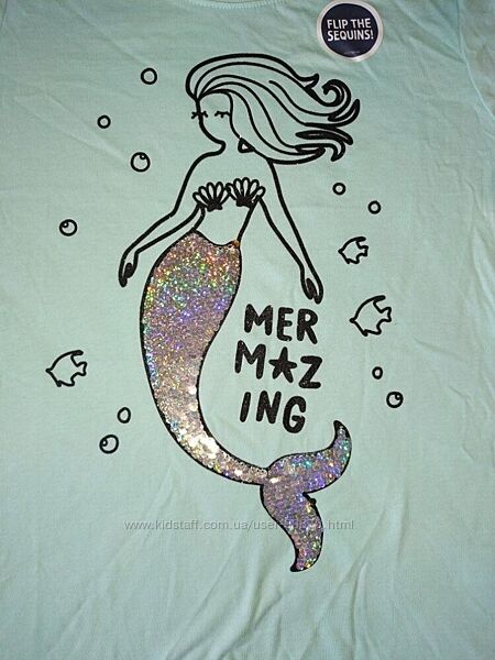 Футболка OshKosh з русалкою з пайєтками-переверташками.Оригінал, привезено із США.