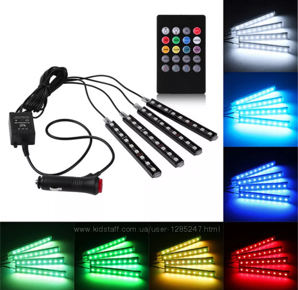 Декоративная подсветка с пультом дистанционного управления и музыкальным контроллером обеспечит хорошее освещение, украсит салон автомобиля, а также, может служить в качестве цветомузыки. Подсветка салона это один из элементов тюнинга интерьера автомобиля.