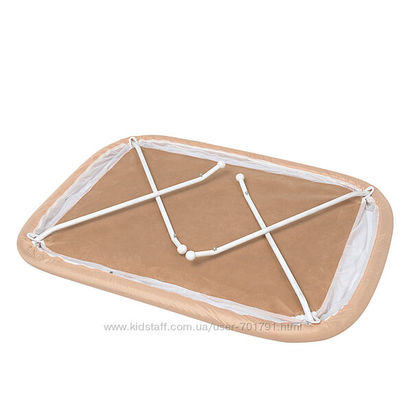 верхній край і дно оббиті м´яким матеріалом (тканиною) для захисту дитини від можливих пошкоджень;сітка відповідає всім стандартам безпеки і дозволяє дитині бачити все навколо; ручки допомагають дитині самостійно вставати;покриття легко миється;у складеному вигляді манеж займає мало місця і може зберігатися у вертикальному положенні; зручний для транспортування.
