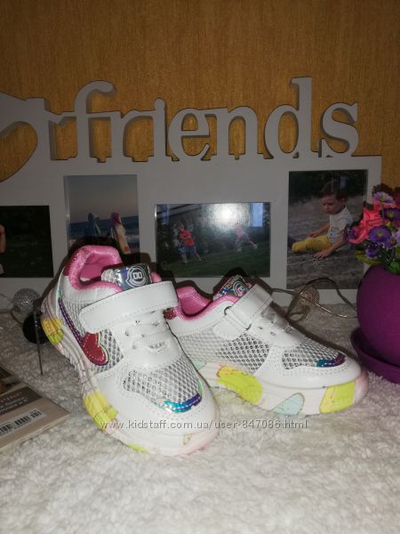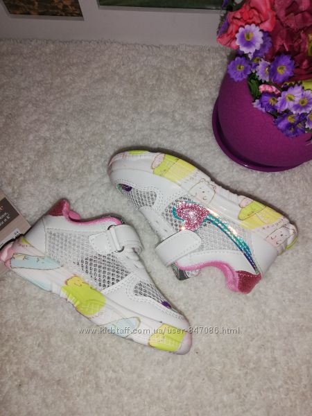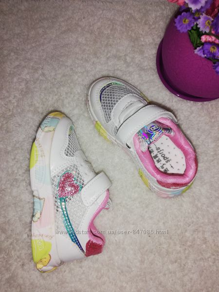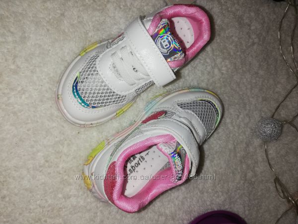 Яркие стильные летние кроссовки для мегаактивных девочек. Верх сеточка и вставки с экокожи. Легкие для ножек. Подошва хорошо сгибается по подошве. Маломерят! Качество на высоте!26р = 15,5 см