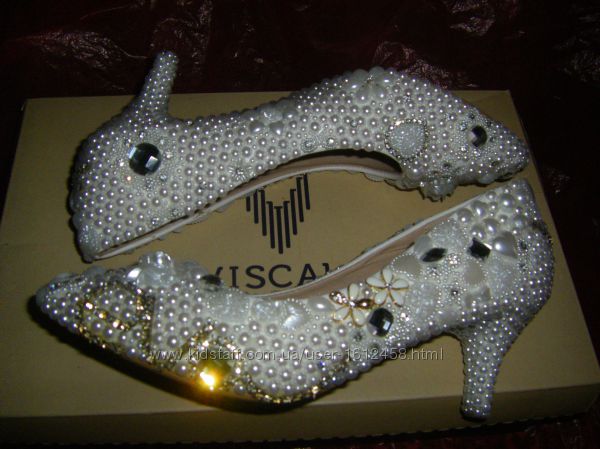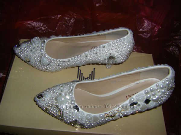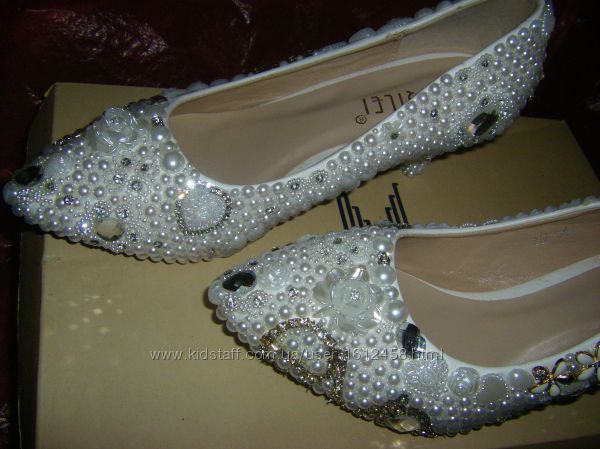 Дизайнерские нарядные туфли, ручная работа, свадебные, в камешках, выглядят очень эффектно, даже лучше, чем на фото.Талисман на всю оставшуюся жизнь )