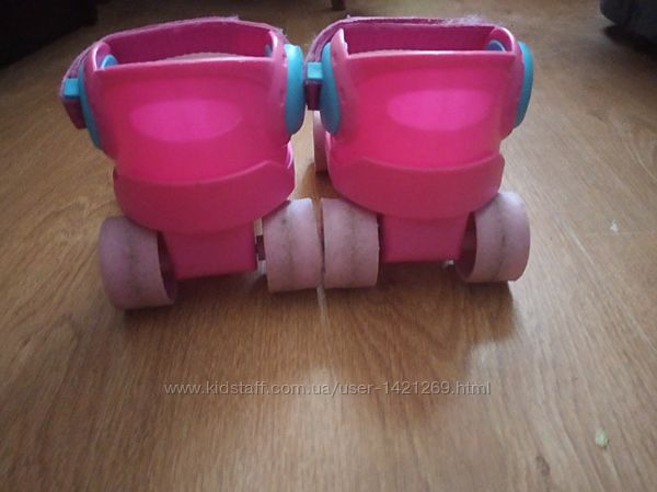 .Раздвижные ролики для самых маленьких, регулировка по длине подошвы обуви ребенка, крепление - пластиковая бакля . Раздвигаются и одеваются на обувь или плотный носочек сверху. Материал - пластик Размер регулируется от 16 до 22 см. Пара тормозов на каждом ролике. Четырехколесные ролики более устойчивы по сравнению с двухколесными роликовыми коньками и более неприхотливы к поверхности, поэтому ребенку будет легче научиться кататься на них. В наличии розовые ролики. Доставка Новая почта Укрпочта.