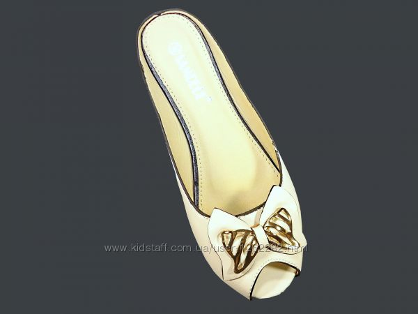 Подробное описание: Шлепанцы женские на маленьком каблуке, с бантом, белые. Размер 36-40.