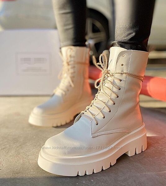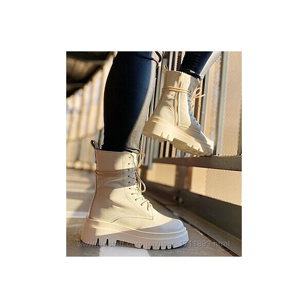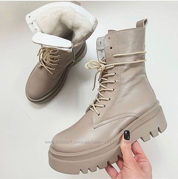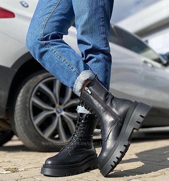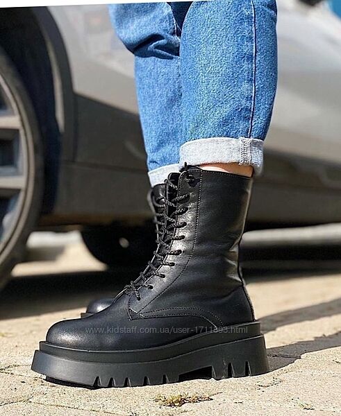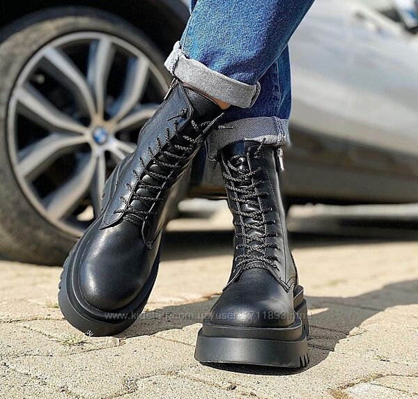 Подробное описание: Женские натуральные кожаные высокие ботинки берцы на массивной подошве