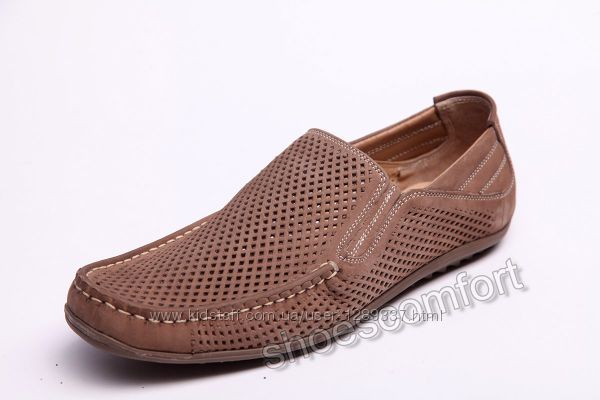 Мокасины мужские летние из натурального перфорированного нубука цвета лате.Модель очень комфортно сидит на ноге. Мокасины не узкие, легкие, дышащие.