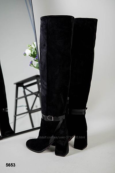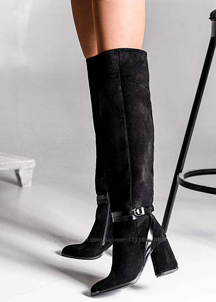 Подробное описание: Женские чёрные натуральные замшевые высокие сапоги ботфорты на каблуке замш