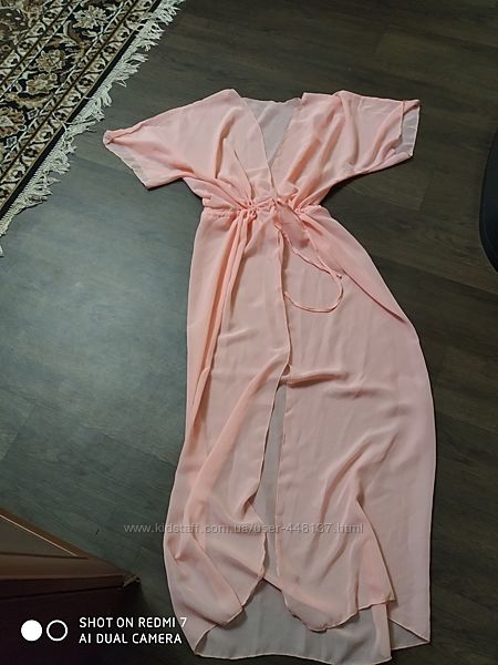 Нежно-розовая длинная пляжная туника