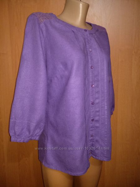 Красивенная рубашка фирмы Marks&Spencer приятного сиреневого цвета. Цвет равномерный, не выгоревший. Состав - 55% лён и 45% вискоза. Смотрится бесподобно! Состояние идеальное - без изъянов.Размер указан UK 10, EURO 38, наш ориентировочно 48. Смотрите внимательно замеры: