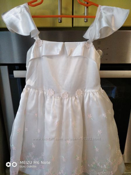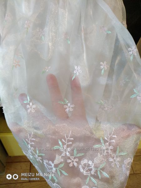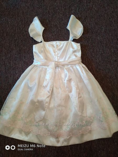 нарядное платье на рост 116-122. В отличном состоянии (одевалось несколько раз). По верхней юбке нежная вышивка. Сзади завязывается на бант и застегивается на молнию. Общая длина 70 см, ПО талии - 30 см, ПО под мышками - 30 см.Отправлю Новой или Укрпочтой за Ваш счет.