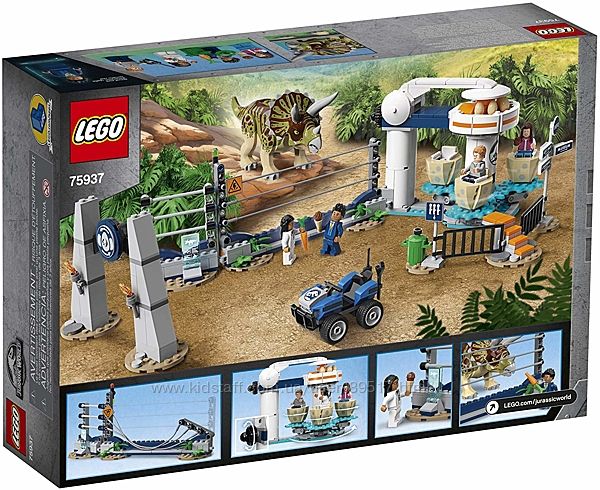 Lego Jurassic World Нападение трицератопса 75937Прокатись на этом потрясающем новом Инкубаторе LEGO ® Jurassic World вместе с Саймоном Мазрани и Элисон Майлз! Будь осторожен: из-за сбоя в электросети могучие Трицератопсы сломали ограждение и сбежали! Прыгай за руль багги вместе с Оуэном Грэди и спеши на помощь. Помаши морковкой перед мордой этого свирепого динозавра, чтобы отвлечь его и спасти жизнь туристу. В Парке Юрского периода никогда не бывает скучно!