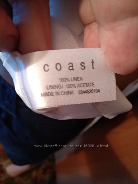 Прекрасная нежная маечка на бретелях из 100% льна фирмы Coast. Длину бретелек можно регулировать. Маечка на подкладке - не просвечивается. Косой крой, поэтому отлично сядет на любую фигуру.Новый, сток, без бумажной этикетки.