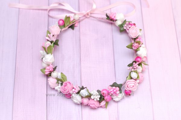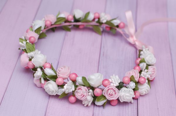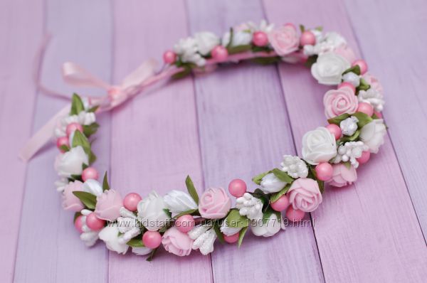 Венок веночек с цветами бело-розовый
