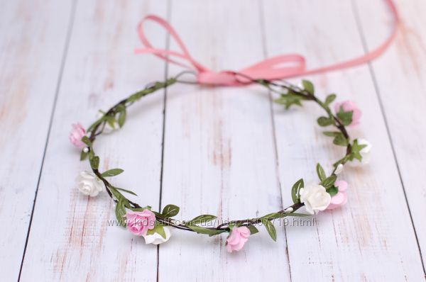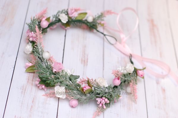 Прекрасно подойдет для прически невесты, фотосессий, а также для других торжественных и повседневных событий, можно просто порадовать себя, создав нежнейший образ с таким венком!Основа - пролочная, длиной около 50 см. Размер универсальный, подходит и деткам, и взрослым.