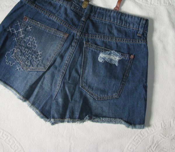 Женские джинсовые шорты MANGO. Б/у, состояние новых, одела один раз, следов носки нет. Высокая посадка.Подтяжки съемные - имитация кожи, с регулируемой высотой.