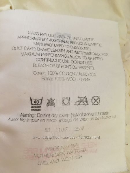 Детское стёганное хлопковое одеяло mathercare 102-92