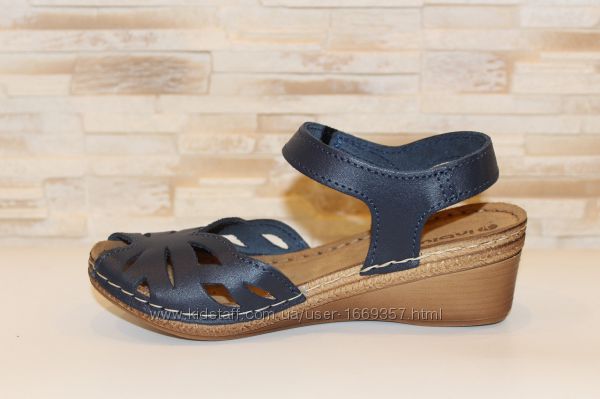 Подробное описание: Босоножки женские синие на танкетке натуральная кожа Б255
