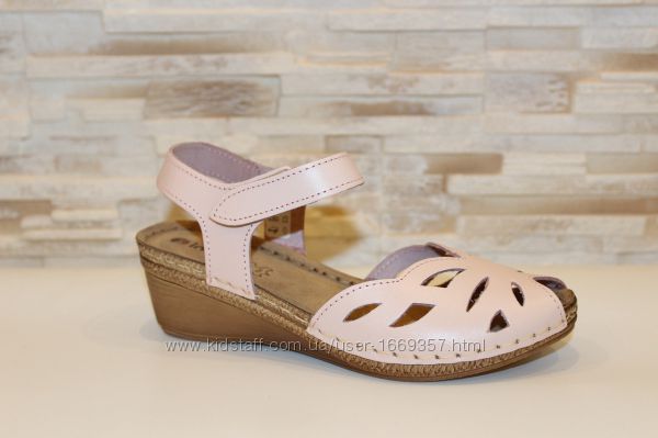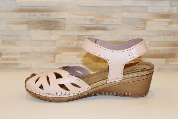 Подробное описание: Босоножки женские розовые на танкетке натуральная кожа Б257