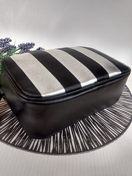 Сумочка закривається на блискавку, одне відділення, підкладка з тканини чорна, є кишенька на блискавці.