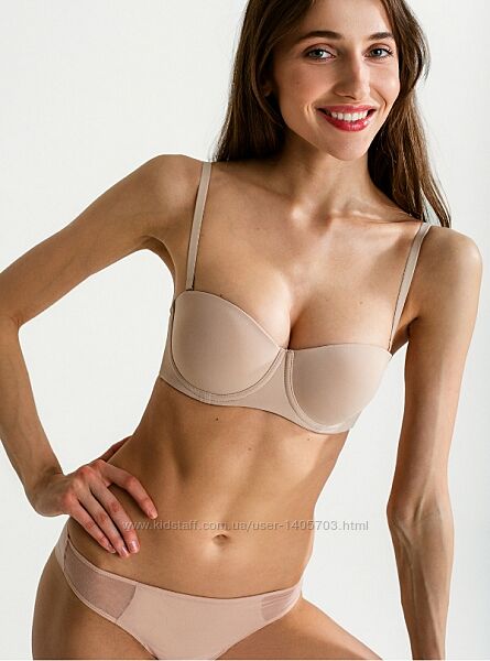 Бретели съёмные. Пуш-ап умеренный, расположен в нижней части чашки.
