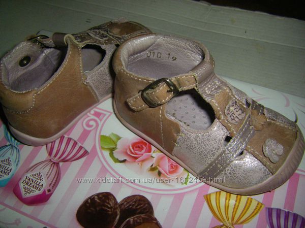 ф.3 БЕЖЕВЫЕ золотистые полностью кожаные туфельки Babybote, отличное состояние, р.19, стелька 12,5+ см - 70 грн