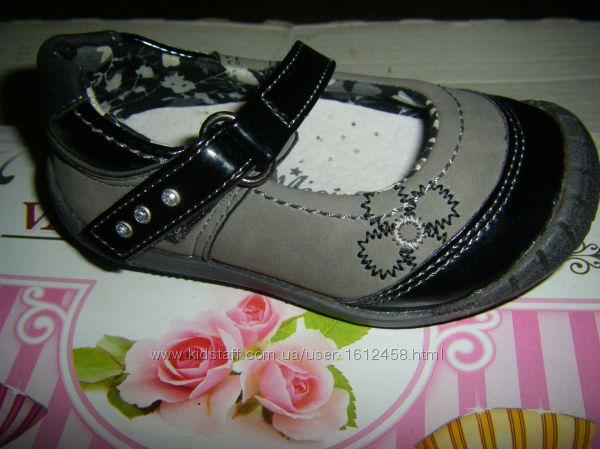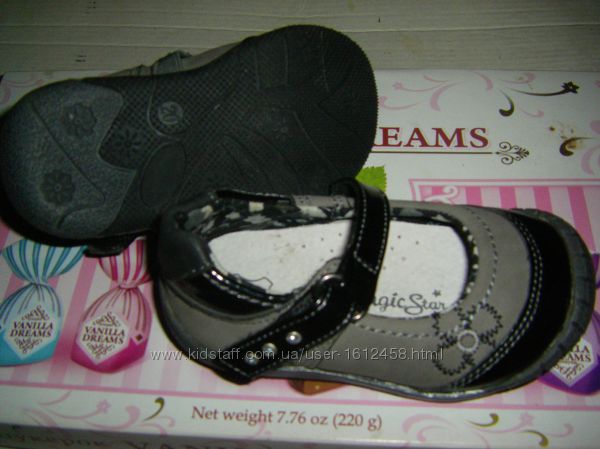 СЕРЫЕ с черным носочком Magic star аккуратные туфельки, верх кожаный, комбинированный, кожаная стелька с супинатором, р.20, стелька 12,5+ см - 120 грн