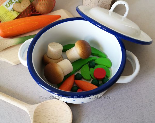 Найкрасивіший посуд для маленьких шеф-кухарів, без сумніву, Glückskäfer з Німеччини!З ним все по-справжньому... Маленькі сковорідки, каструльки, миски, чайник, тертушка, черпачки та інше кухонне приладдя -- все це відрізняється від своїх "дорослих родичів" лише розмірами.
