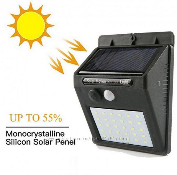 Настенный светодиодный фонарь с датчиком движения Solar Powered Led Wall Light обладает солнечной паленью в 200 мАч (6 В, 0.49 Вт), степенью защиты от пыли и влаги IP65 и встроенным датчиком движения. Вам не придется каждый раз включать и выключать устройство – оно делает это автоматически при надобности. Датчик улавливает движения и звук на расстоянии 3-5 метров – фонарь автоматически включится, когда человек появится в диапазоне работы