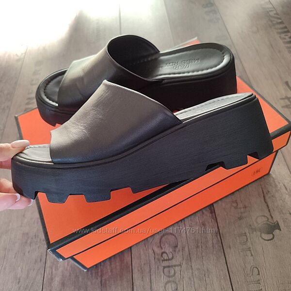 ОригиналНовые черные кожаные шлепанцы Miss Roy (Турция)
