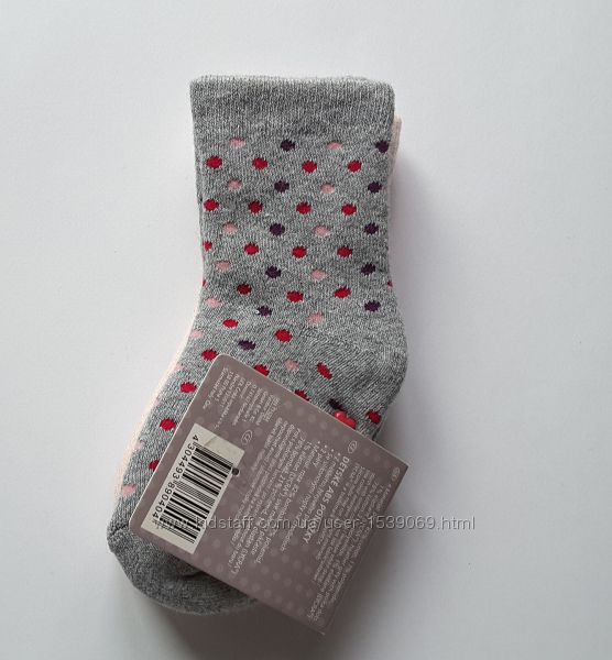 Состав: Розовые носочки : 82 % хлопок, 17% полиамид, 1% эластан. Серые носочки: 78 % хлопок, 21 % полиамид, 1 % эластан.