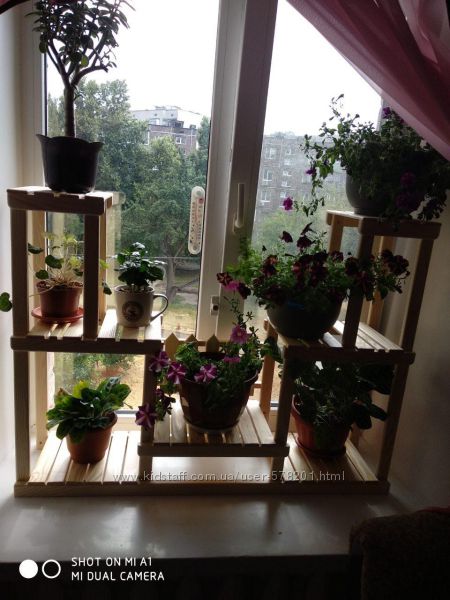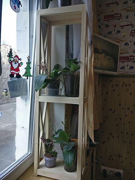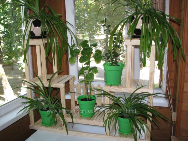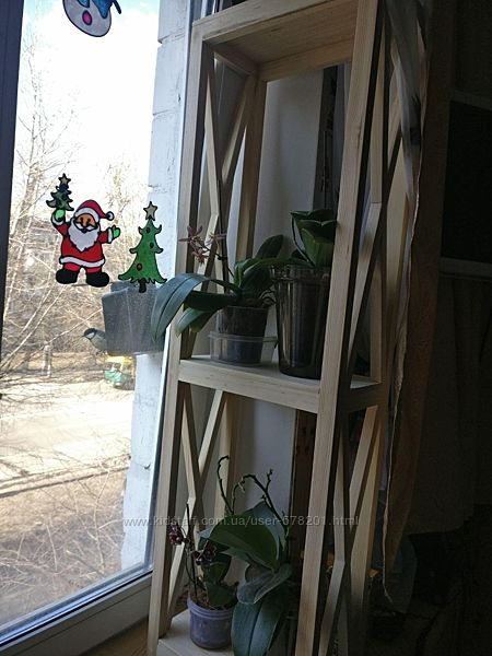 Размеры - высота 70 см, ширина 1м, глубина 25 см. Такую подставку можно поставить на подоконник или на пол. Цена 2000 грн.