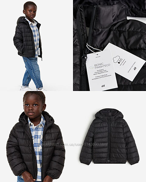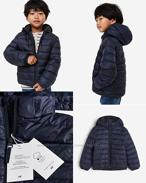 Лёгкая стаганая куртка h&m съемным капюшоном, воротником-стойкой, передней молнией с защитой подбородка, карманами в боковых швах, прорезиненным капюшоном, манжетами и низом. Подкладка.