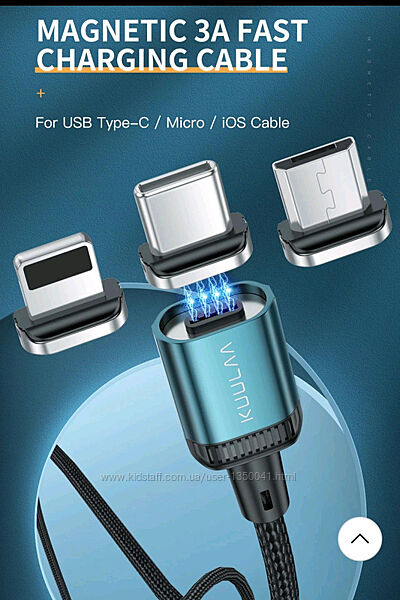 Подробное описание: Магнитный кабель KUULAA MicroUSB Type-C Lightning IOS зарядка андроид айфон