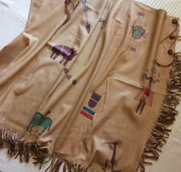 Шматок натуральної, високоякісної шкіри. Колишня спідниця із фурнітурою.Шкіра дуже м´яка. Принт у стилі латинської Америки (див. фото). Колір рівний, на фото відблиски