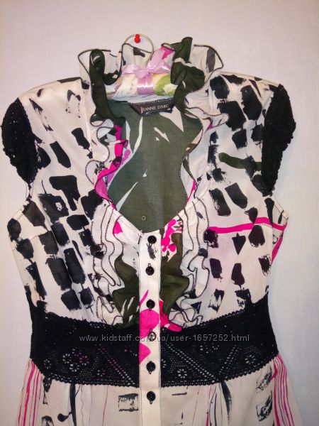 Фото1-4: Натуральная легкая блуза с рюшами и плетеным кружевом Jeanne D´Arc.б\у. в идеальном сост.-199 грн.